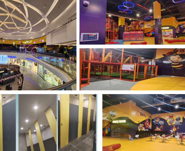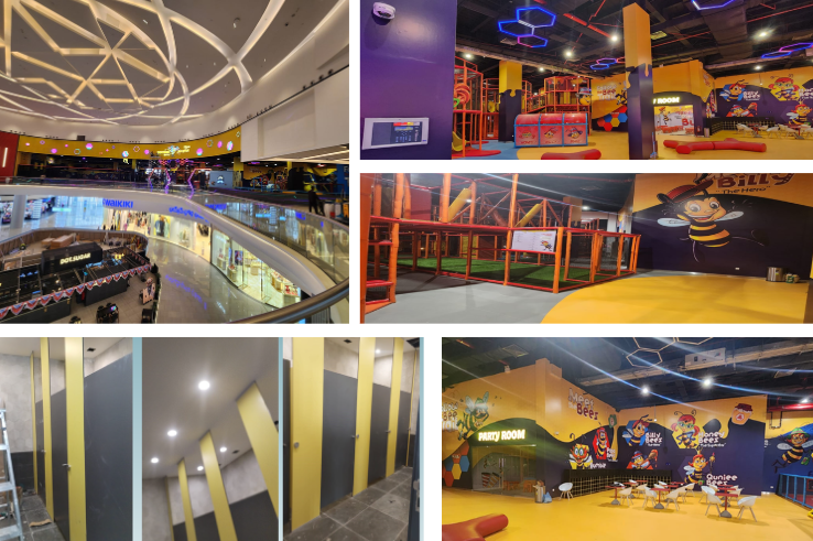We executed the fit-out and finishing works for "Billy Beez" at The View Mall, Riyadh, for Sala Entertainment. This Family Entertainment Center (FEC) project featured vibrant designs requiring high precision in executing colorful decorations and specialized safety flooring for play zones. Our scope covered all architectural and MEP works, with a strict focus on applying the highest safety and durability standards to ensure a secure environment for the park's young visitors.